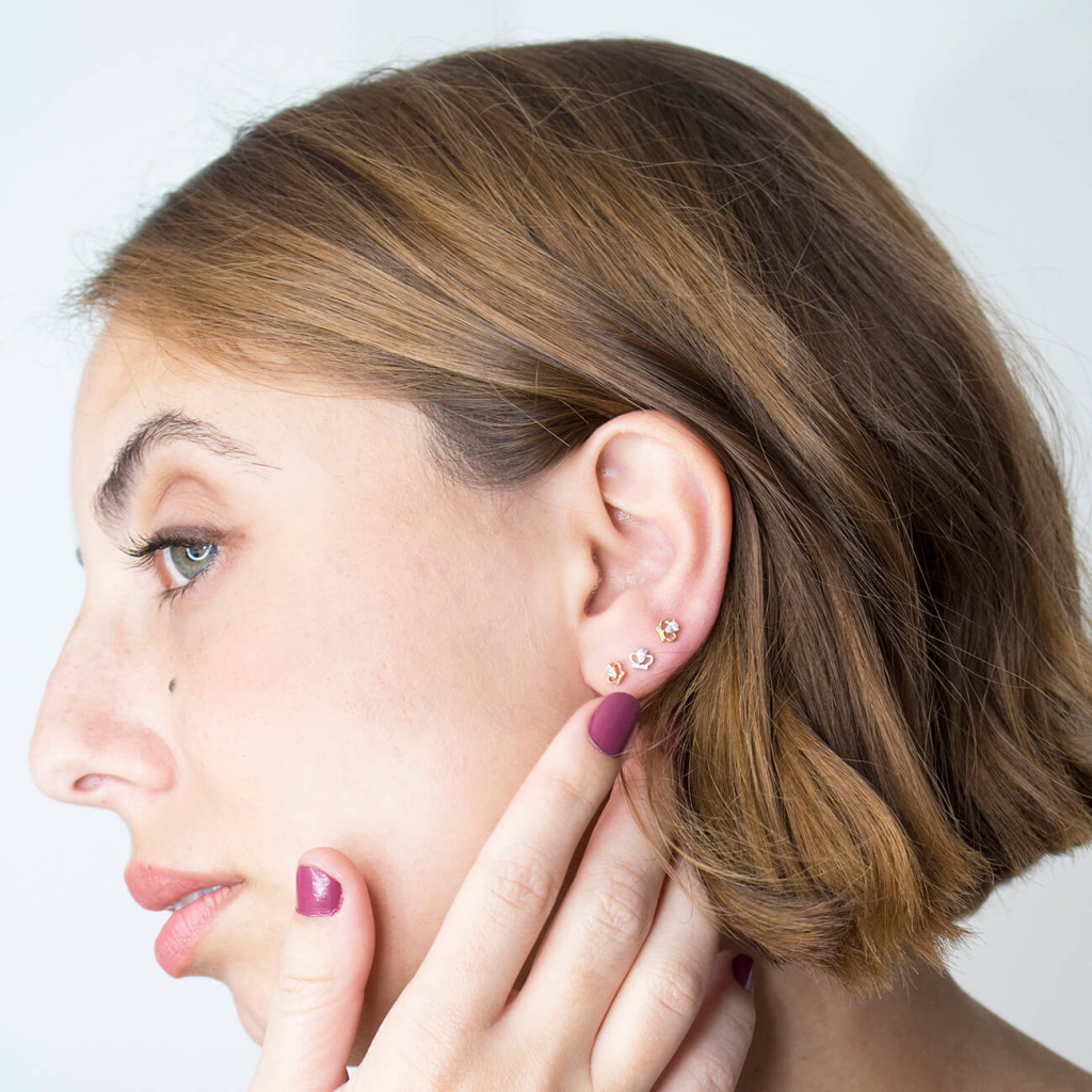 Umístění: Tragus, Nosní dírka, Ušní lalůček, Helix, Conch, Přední helix