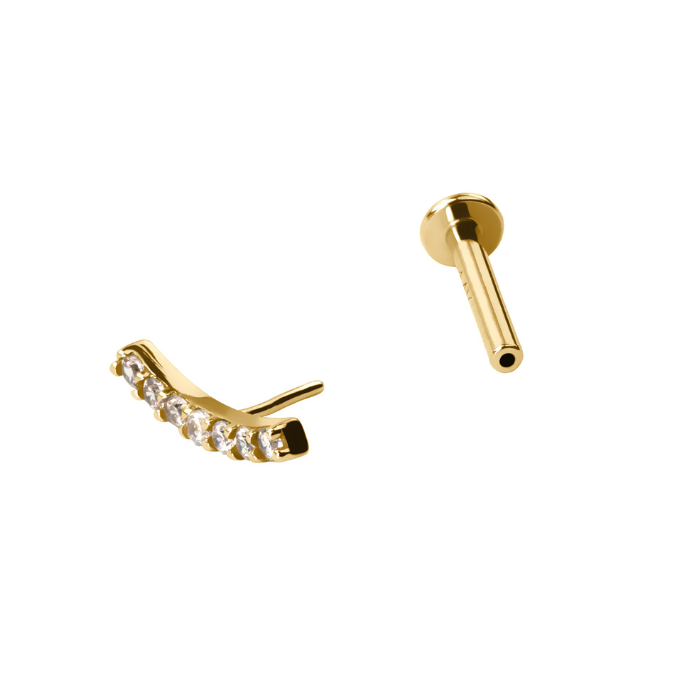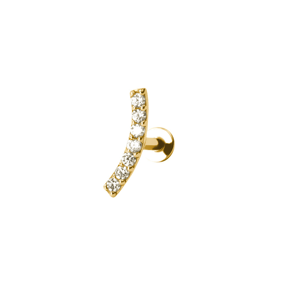 Push-in labreta z 14k zlata s zakřiveným topem s kamínky