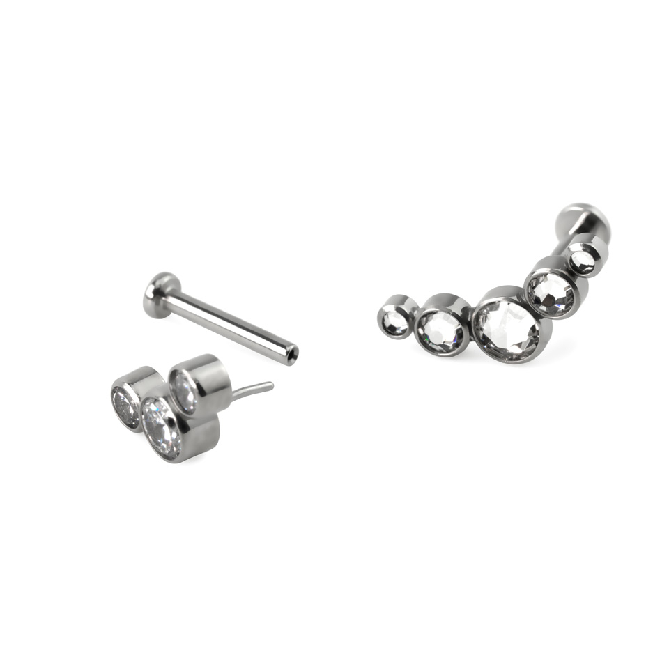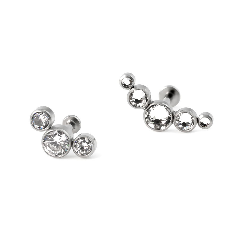 Tento šperk se prodává ve dvou různých provedeních. Můžete si vybrat, jestli bude váš nový piercing zdobený 5 nebo 3 kamínky. Samozřejmostí je, že si můžete vybrat i z různých barev. Kamínky, kterými je šperk ozdoben, jsou různě velké. Když se budeme bavit o modelu s pěti kamínky, pak má prostřední kamínek velikost 4 mm, druhý největší 3 mm a ten nejmenší 2 mm.