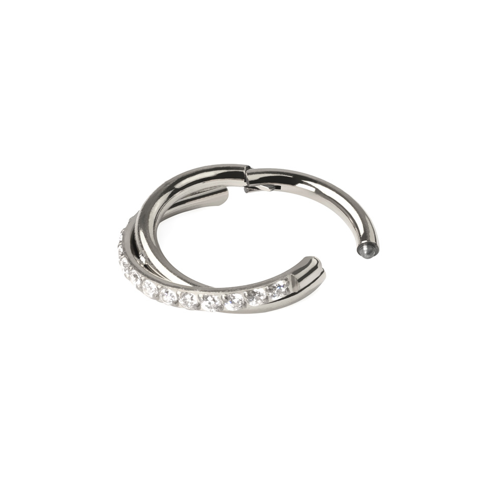 Zdobený křížící se design je perfektní pro dodání elegantní jiskry vašim piercingům, například helixu, daithu, rooku nebo dokonce ušním lalůčkům.