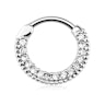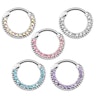 Kroužek je posetý kamínky v pěti různých barvách. Kamínky jsou poskládané až k otevíracímu kloubu; jak jej jednou nasadíte do vašeho septumu, uvidíte jen je a jejich nádhernou hru barev. Ať už si vyberete jakoukoliv barvu, všechny mají na okrajích řadu teček a to jak nahoře, tak i dole. Design tohoto septum clickeru je elegantní a pečlivě detailní.