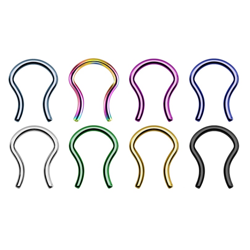 Tato krásná náhrada za septum piercing je k dispozici v několika velikostech i barevných provedeních, a může být použita nejen jako náhrada za piercing do nosu, ale i jako šperk samotný. Je vyrobená z chirurgické oceli, a dá se využít pro septum piercing.