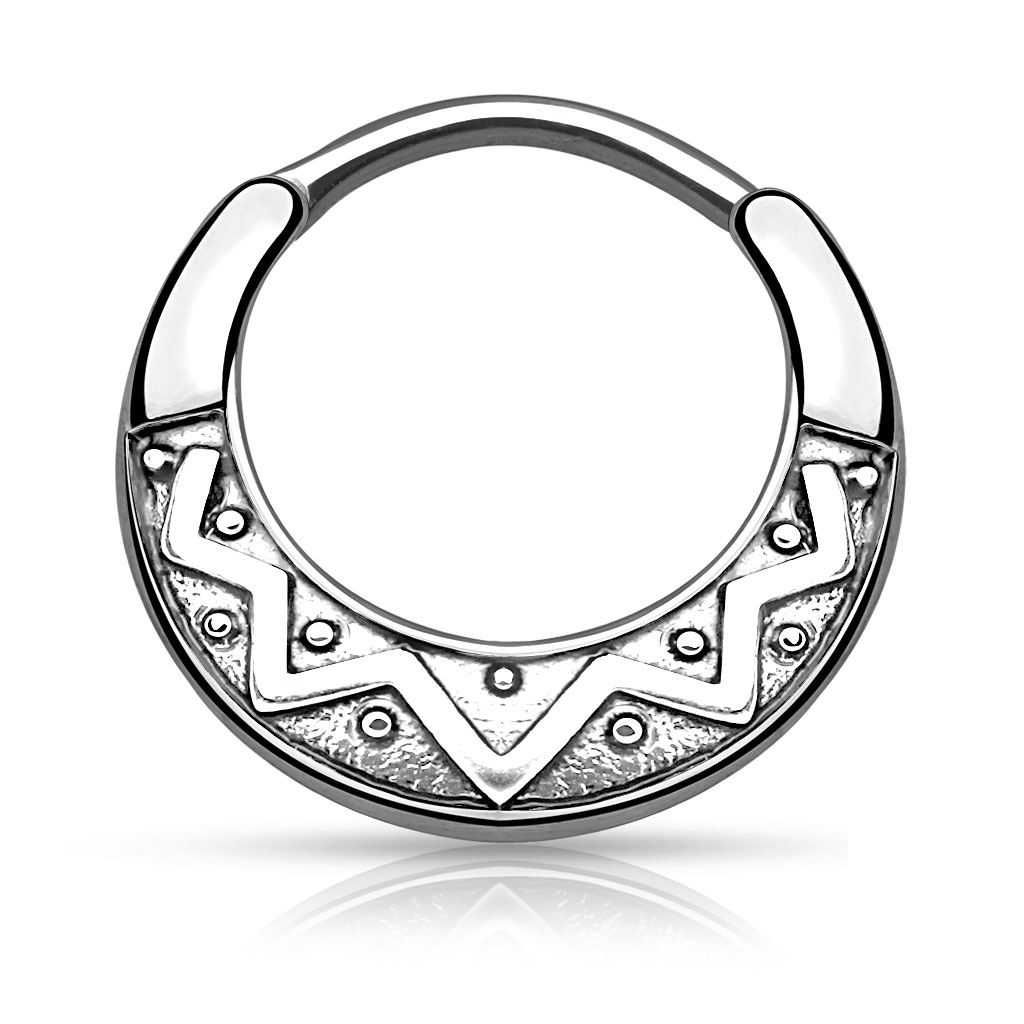 Pokud máte rádi zajímavé a unikátní šperky, potom jste nejspíš našli Váš další septum piercing. Tomuto typu šperku se říká septum clicker, protože má zavírání na zacvaknutí, a je tedy velmi jednoduché ho nasadit i sundat. Tyčinku stačí vycvaknout, protáhnout piercingovou dírkou, a zacvaknout zpátky na místo.