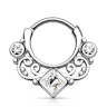 Pokud jste na sebe pyšní, že jste se konečně odhodlali propíchnout si Váš septum, a chcete si jej náležitě ozdobit, tento fantastický septum piercing se zavíráním na zacvaknutí si jistě zamilujete. Tento šperk je velmi elegantní, a má design, který nikdy nevyjde z módy. Je ozdobený několika kamínky, které jsou k dispozici v několika barvách, a mezi kterými se proplétají drobné, ozdobné vlnky.
