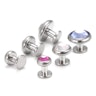 Tato kožní kotva má průměr 3 mm a to jak na horní i spodní desce. Vzdálenost mezi nimi je 2 mm a tloušťka je 1,2 mm. Můžete si vybrat barvu kamínku, kterou preferujete, z nabídky výše.