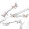 Pokud hledáte velmi speciální šperk pro Váš piercing do bradavky, můžeme Vám jeden takový nabídnout. Šperk se skládá z rovné tyčinky o délce asi 17 mm, na jejichž koncích je umístěn drobný motýlek s krásnými křídly. Tělo motýlka je tvořeno podlouhlým kamínkem, zatímco jeho křídla zdobí drobnější kamínky, které k tomu většímu skvěle pasují.