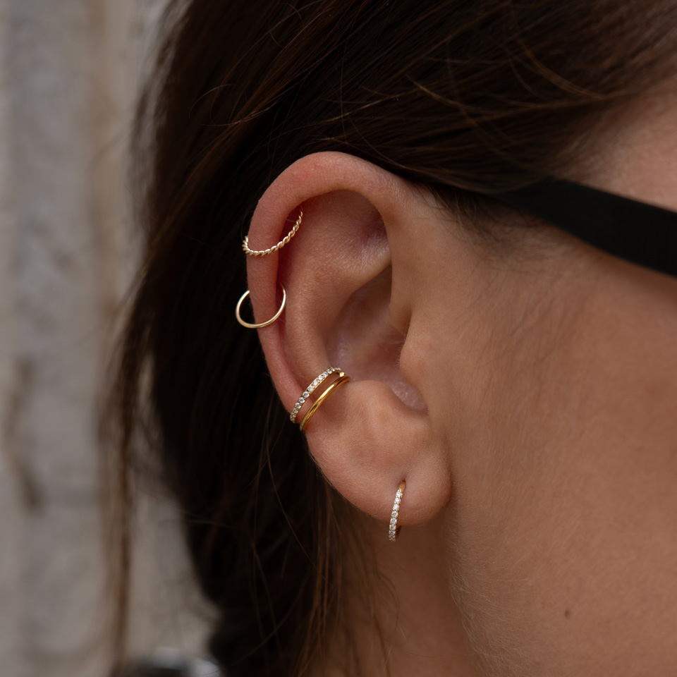 Umístění: Tragus, Snug, Septum, Rook, Nosní dírka, Ušní lalůček, Labia, Helix, Daith, Conch, Kapuce klitorisu, Anti-tragus, Přední helix