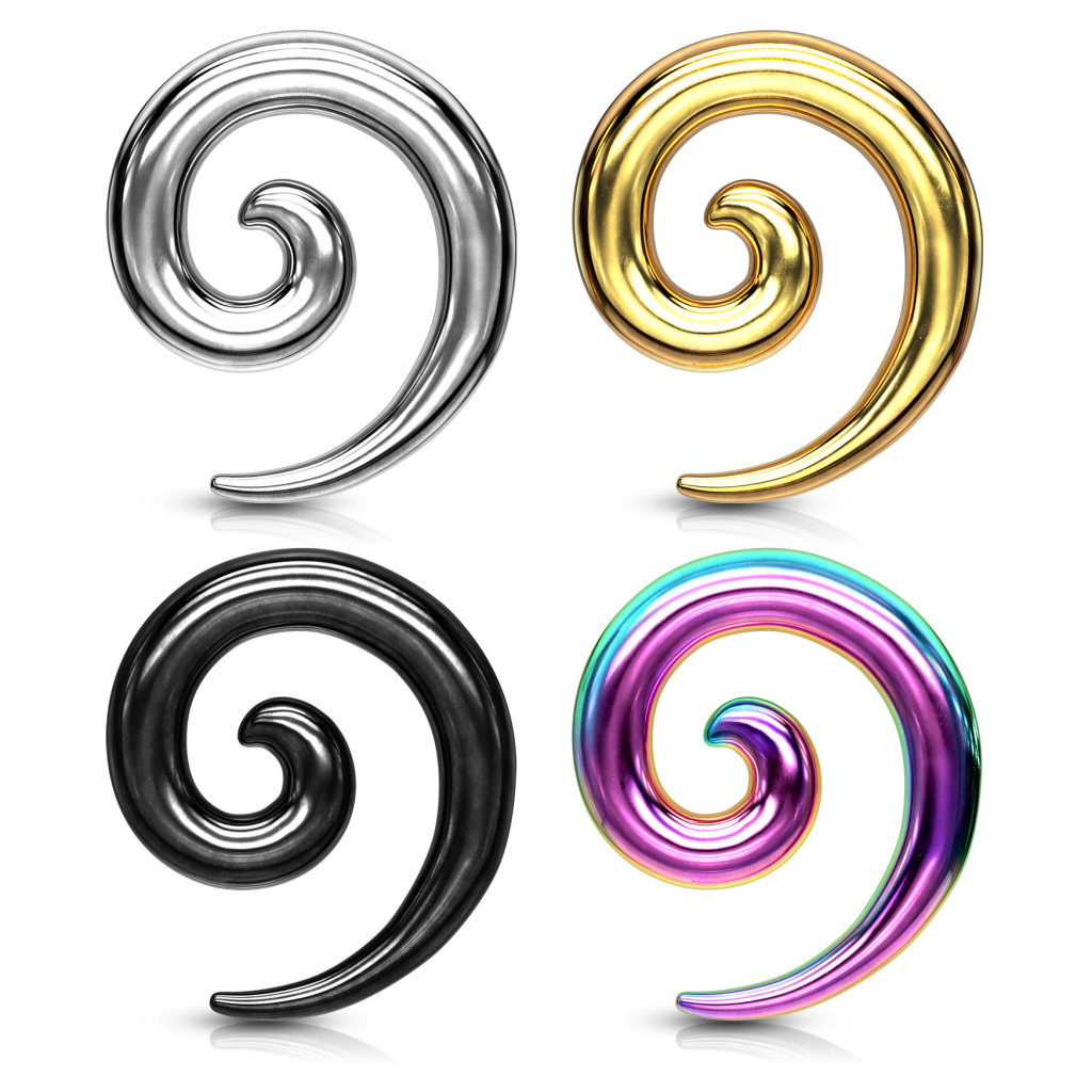 Barvu tohoto spirálového roztahováku si můžete vybrat ze čtyř různých barev. Jedna z nich je klasická stříbrná barva, která je samozřejmě nadčasovým favoritem. Ale můžete také zkusit něco nového. Pokud máte rádi roztahovák, který vytvoří velký kontrast, bude pro vás skvělou volbou černá barva. Pokud máte rádi roztahovák, který vám dodá víc ženský a elegantní vzhled, jděte do zlaté barvy. Pokud milujete barevné šperky je v neposlední řadě vícebarevný model skvělou volbou.