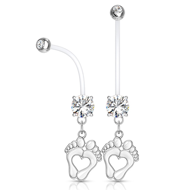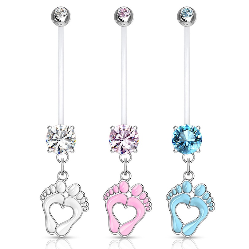 Název: Těhotenský piercing do pupíku s dětskými nožičkami a kamínky