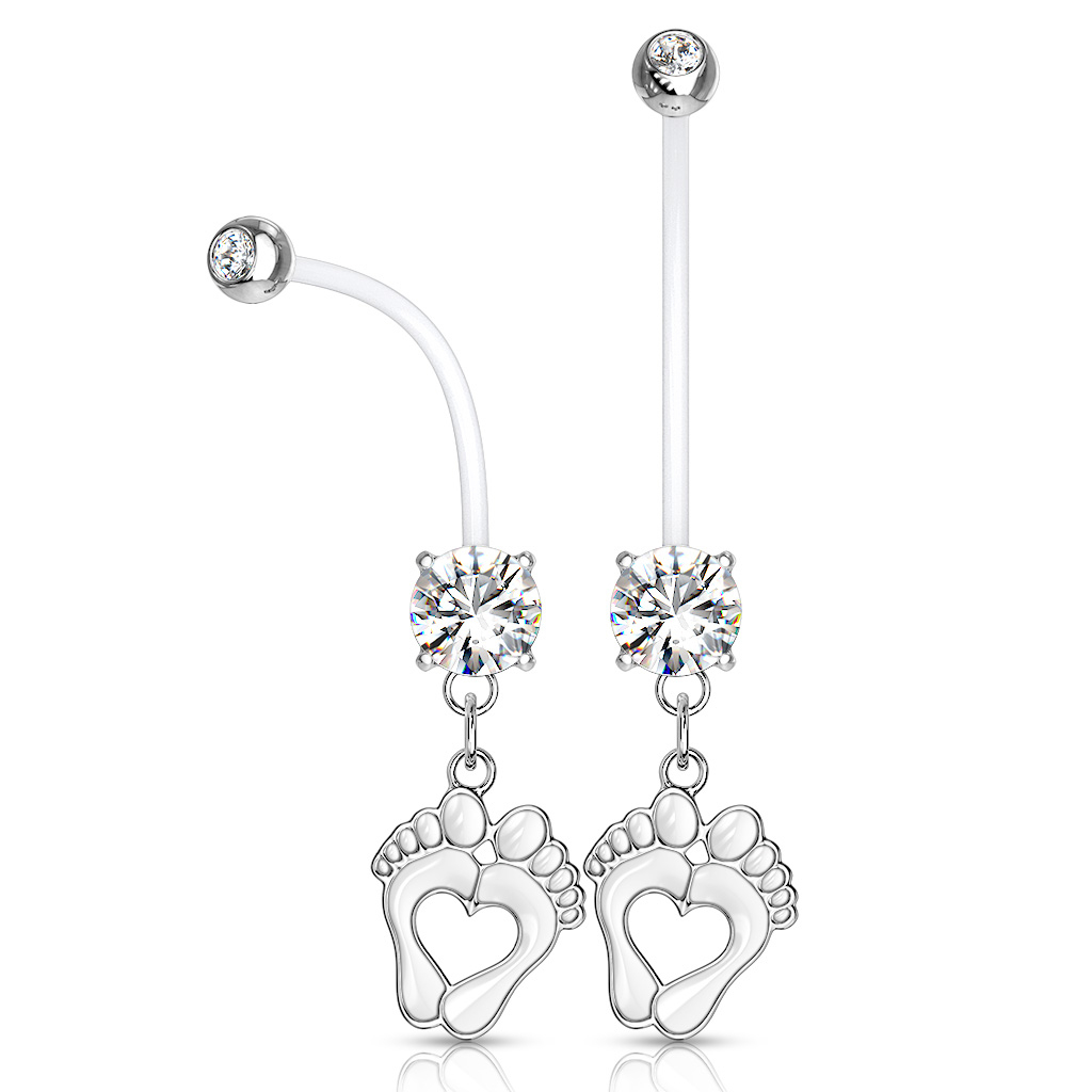 Název: Těhotenský piercing do pupíku s dětskými nožičkami a kamínky