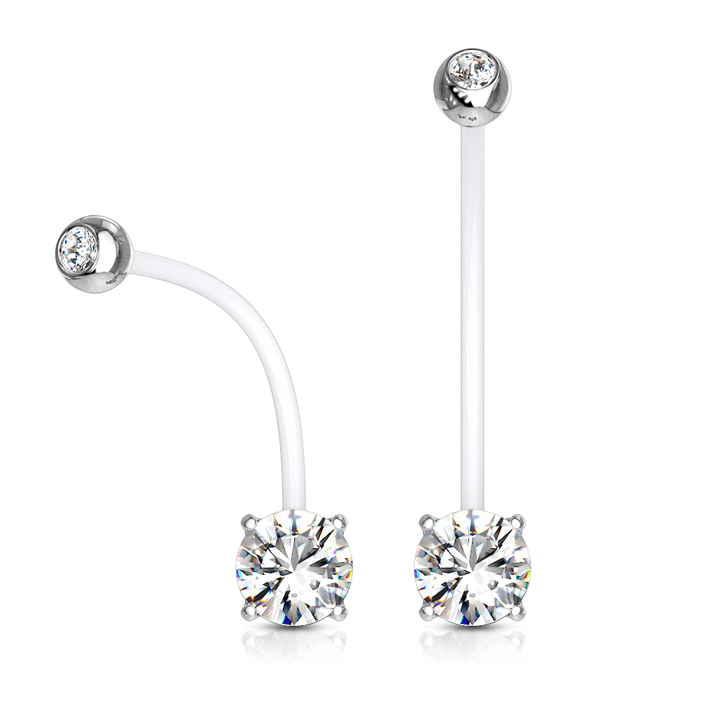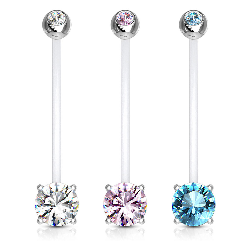 Tento piercing do pupíku je vyroben z měkkého plastového materiálu, který se jmenuje PTFE a je velmi ohebný. To znamená, že bude kopírovat pohyby vašeho těla a přizpůsobí se tak vašemu rostoucímu bříšku.