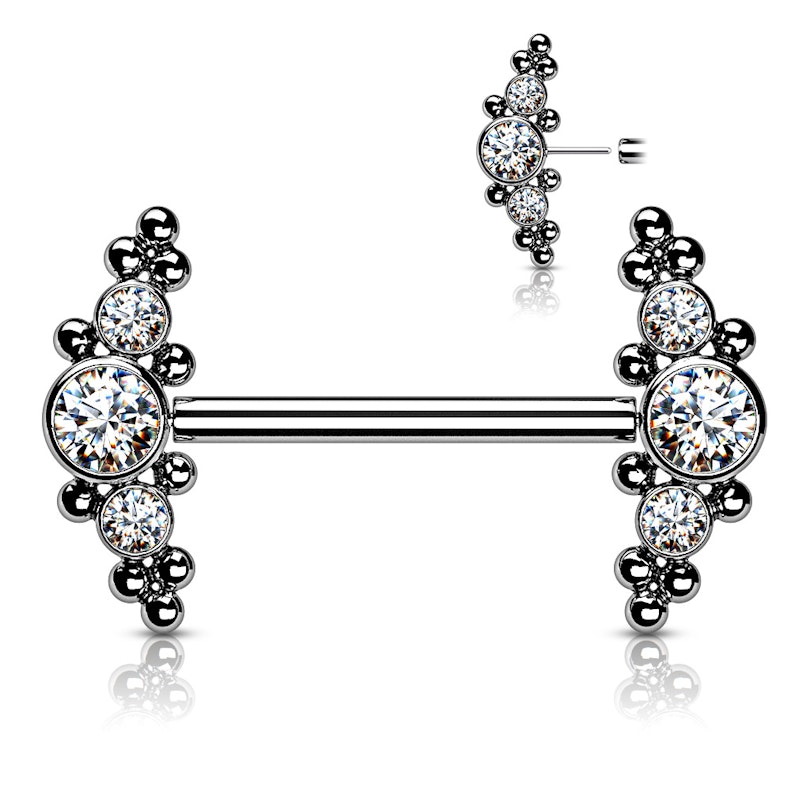 Název: Titanová činka do bradavky s kamínky bez závitu