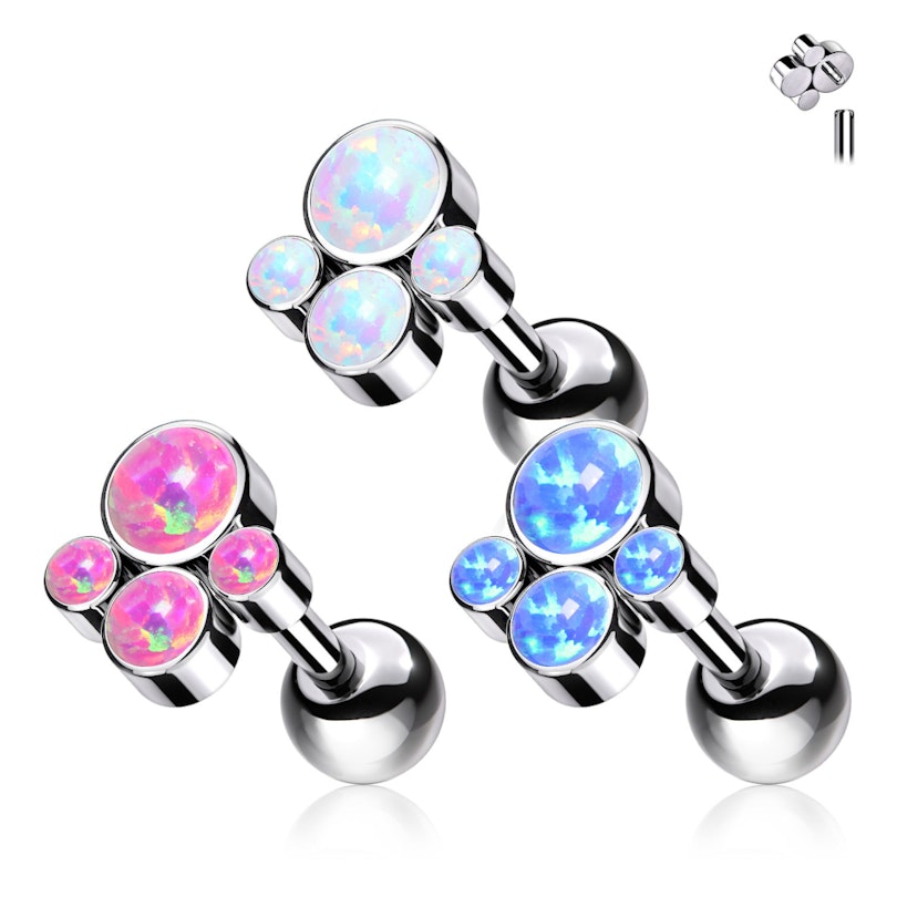 Titanová činka s vnitřním závitem se čtyřmi opálovými kamínky