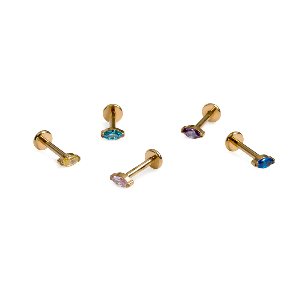 Markýzová kamínek dodává tomuto šperku rafinovaný detail, který se hodí do leckterého piercingu ucha. Je vyroben z titanu ASTM F136, takže je hypoalergenní, voděodolný a při správné péči vám vydrží celý život. Vnitřní závit zabraňuje podráždění pokožky a zajišťuje bezpečnost, takže se po nasazení nemusíte o nic víc starat.