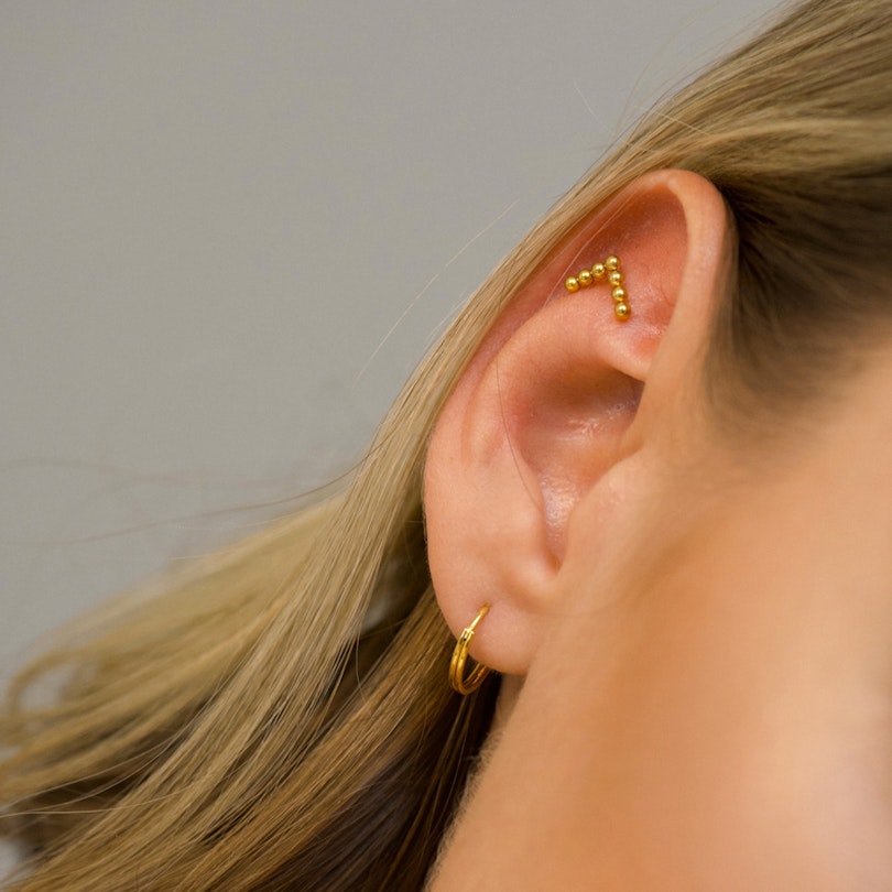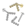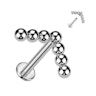 Titanová labreta s korálkovým kuličkovým topem je opravdu módní kousek. Top ve tvaru šipky je tvořen 7 korálky z nichž má každý 2 mm. Obě strany měří 7,8 mm. Dodává se ve zlaté a stříbrné barvě.