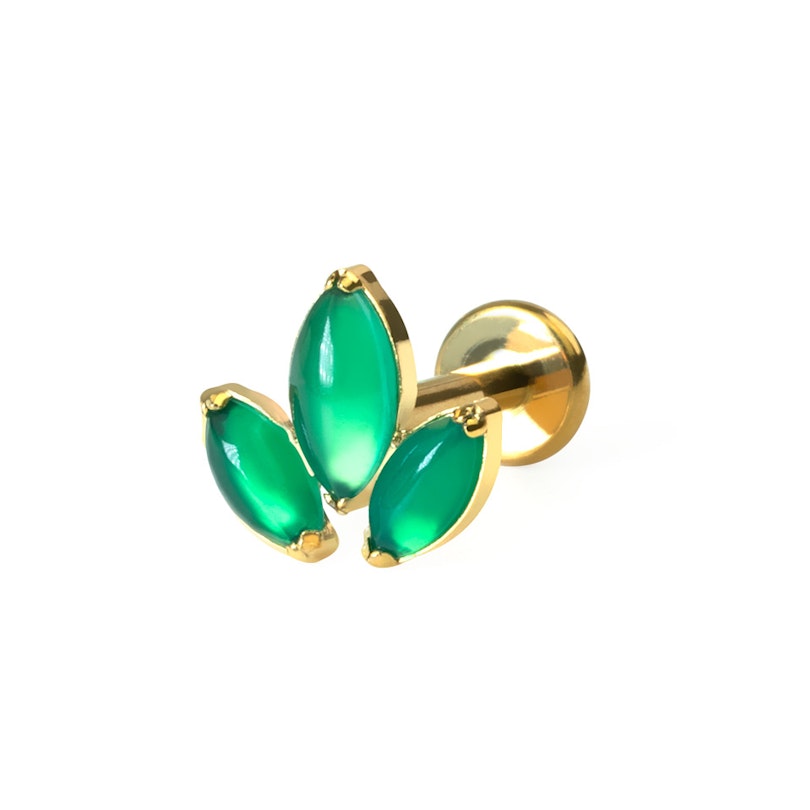 Tato stylová labreta je zdobená 3 markýzovými zelenými kamínky v designu lotosového květu.