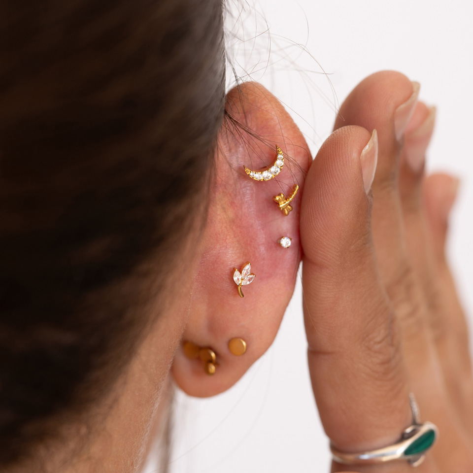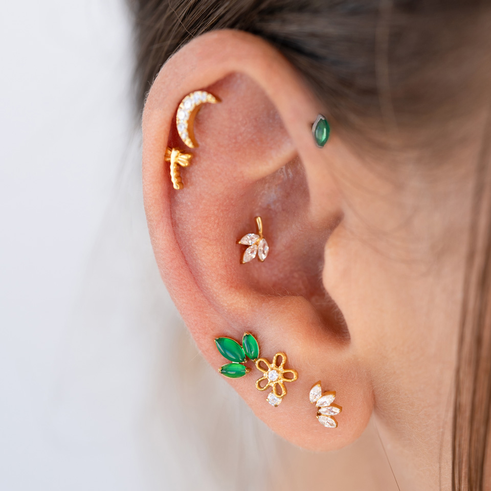 Umístění: Tragus, Ušní lalůček, Helix, Conch