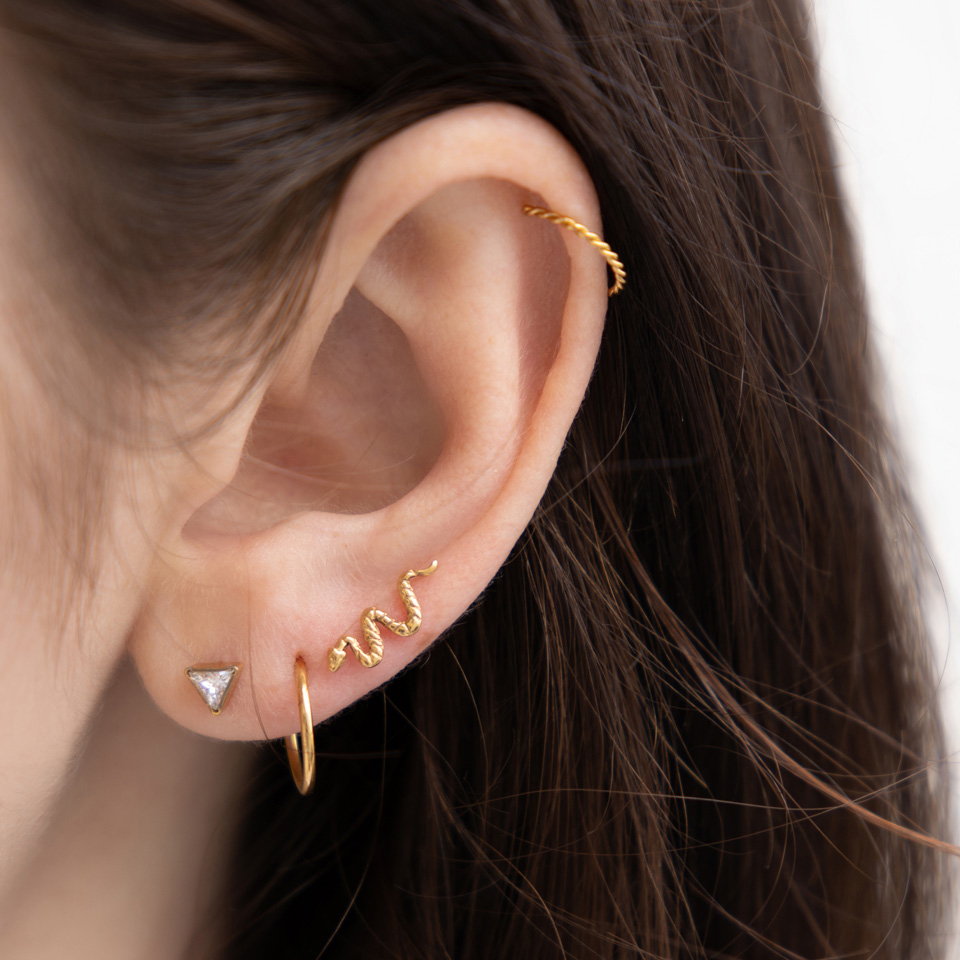 Šperk je velmi hezký a podrobný, a to, že je tenký, ho dělá decentním a použitelným, i když máte v jednom uchu několik náušnic, aniž by to vypadalo příliš přeplněně. Jediným problémem, který bych chtěl zmínit, je, že noha náušnice je velmi krátká, zatímco zadní kolík je příliš dlouhý, což ztěžuje zavření.