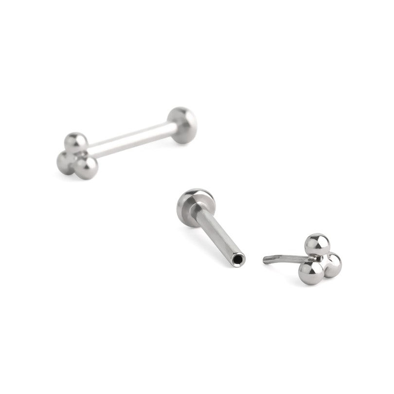 Titanová push-in labreta s trojúhelníkovým shlukem kuliček