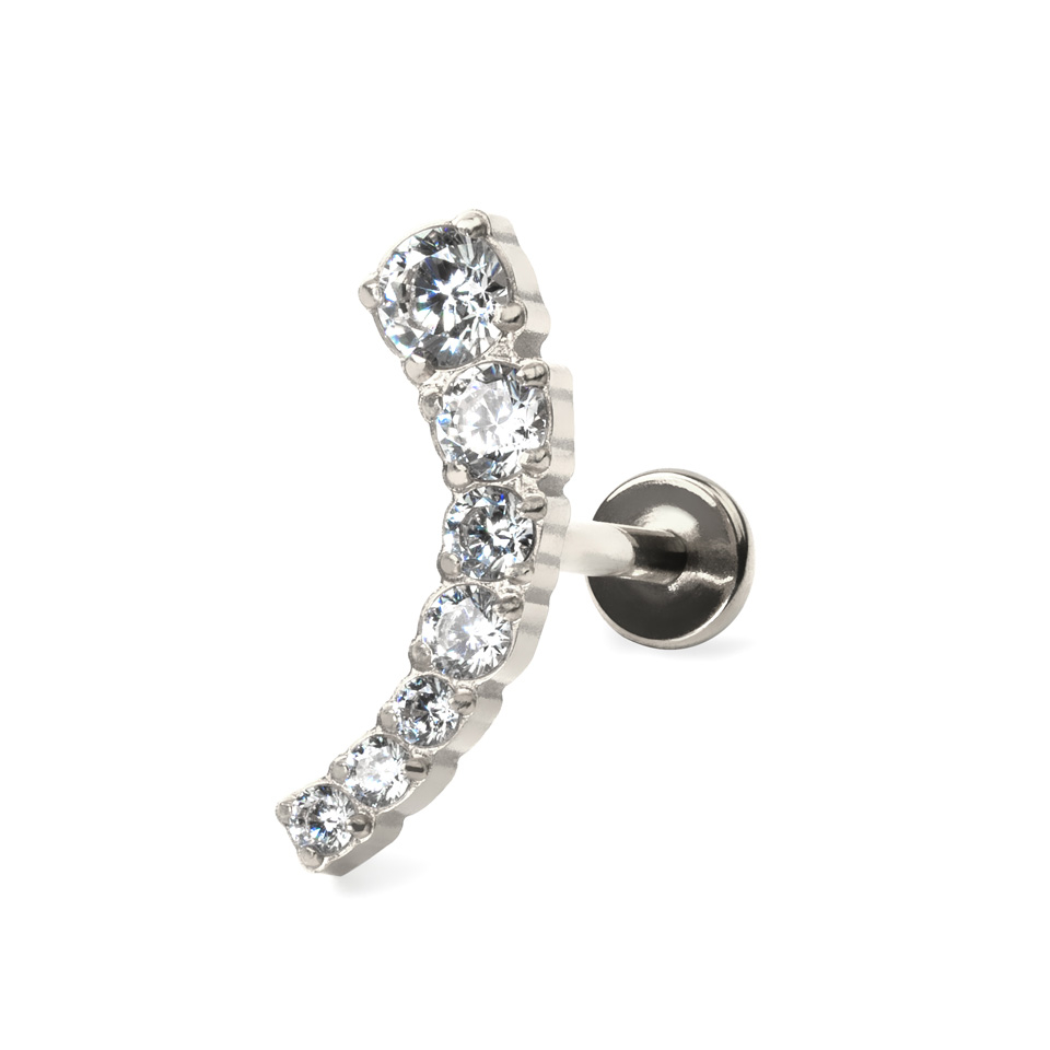 Titanová push-in labreta se zakřiveným topem s kamínky