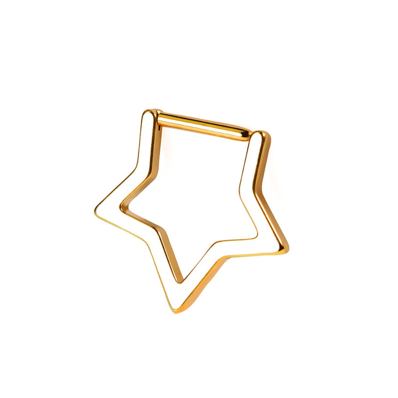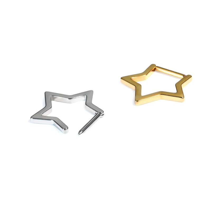 Tento clicker z titanu ve tvaru hvězdy se perfektně hodí hned do několika různých piercingů. Skvěle se bude vyjímat například v septum piercingu, helixu, lalůčku a nebo třeba rooku. Je z odolného titanu, je voděodolný, šetrný k citlivé pokožce a vyroben tak, aby vydržel. Díky pantu se do piercingu jednoduše vkládá. Tento šperk je ve skutečnosti dutý, díky čemuž má robustní vzhled a přitom je stále velmi lehký a pohodlně se nosí.
