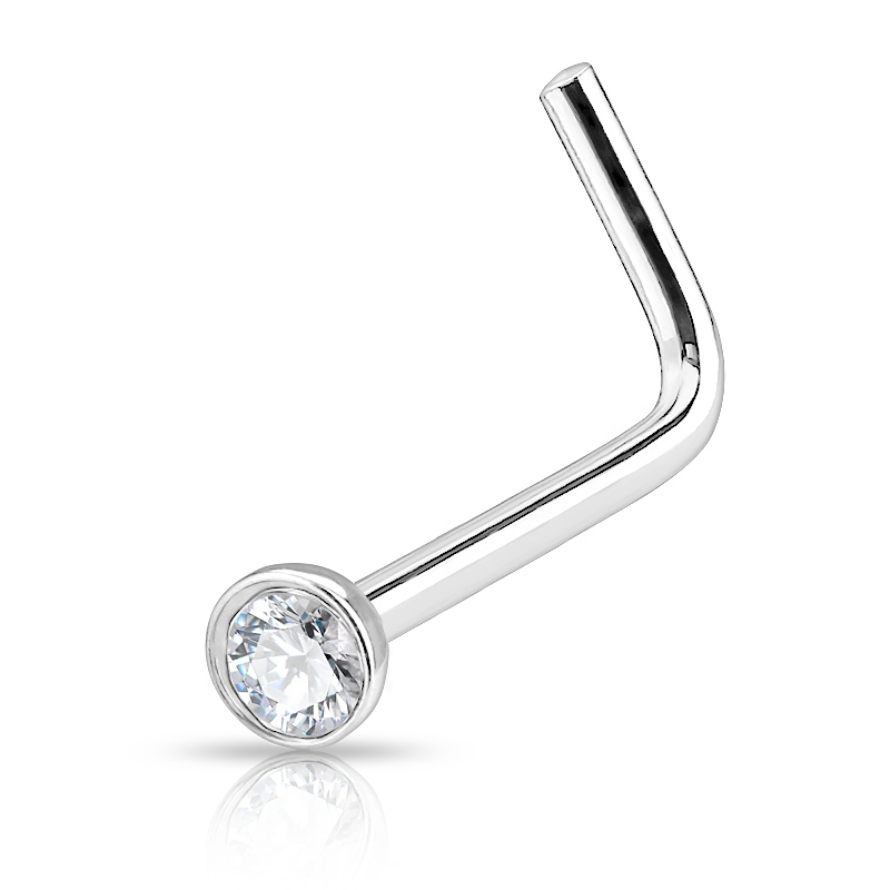 Titanový piercing do nosu zahnutý do "L" s kamínkem