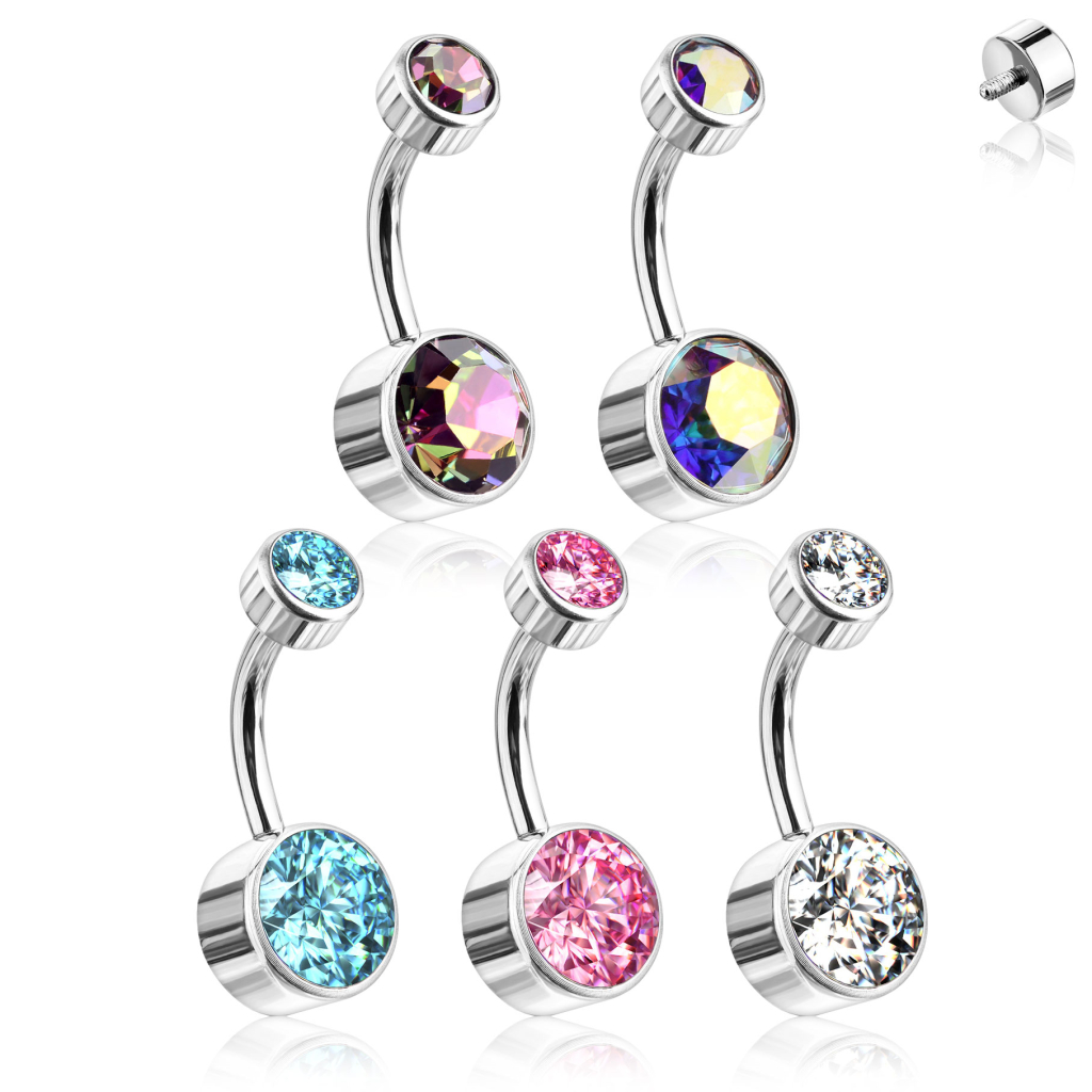 Titanový piercing do pupíku s plochými kuličkami a vnitřním závitem