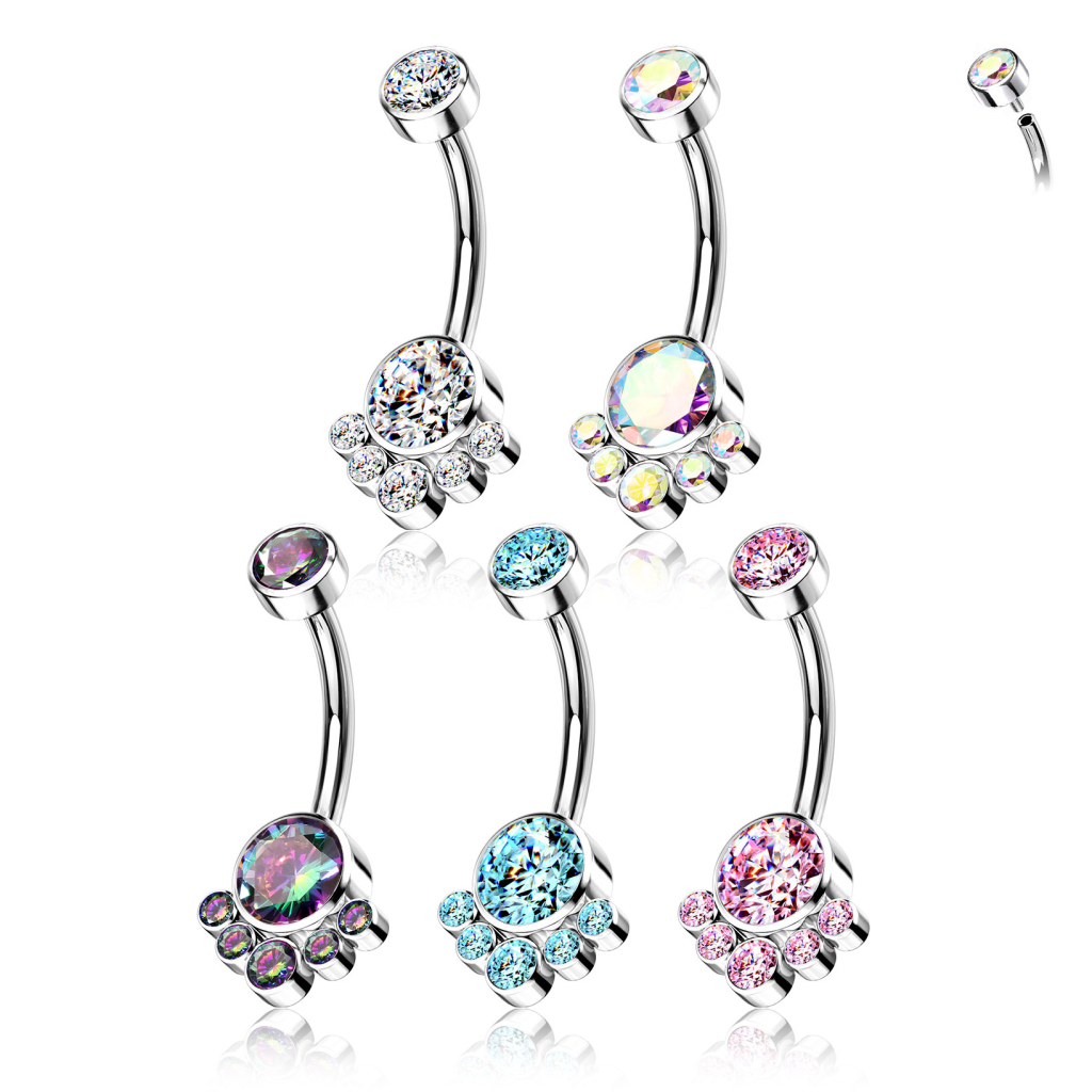 Název: Titanový piercing do pupíku se shlukem kamínků