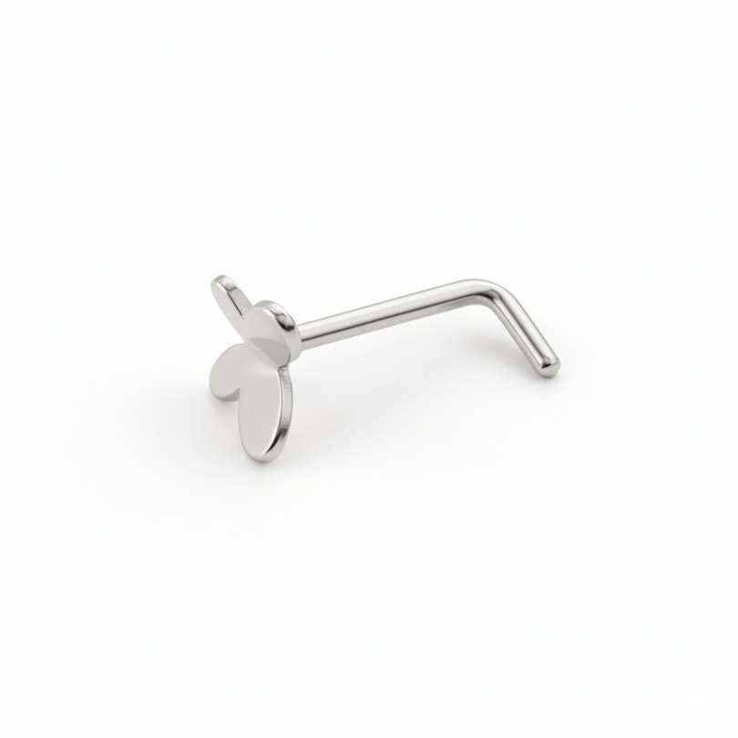 Titanový šperk do nosu zahnutý do "L" s motýlem