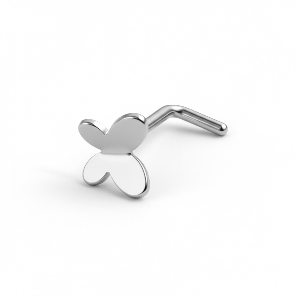 Titanový šperk do nosu zahnutý do "L" s motýlem