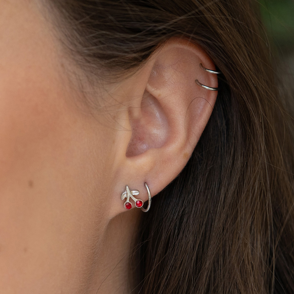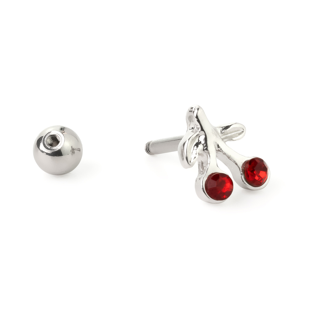 Tyčinka tohoto šperku je 6mm dlouhá, a bude tedy skvěle sedět do většiny dírek. Ozdoba piercingu je tvořena dvěma třešněmi s krásnými, červenými kamínky.