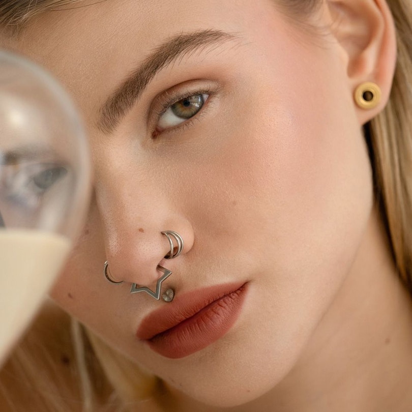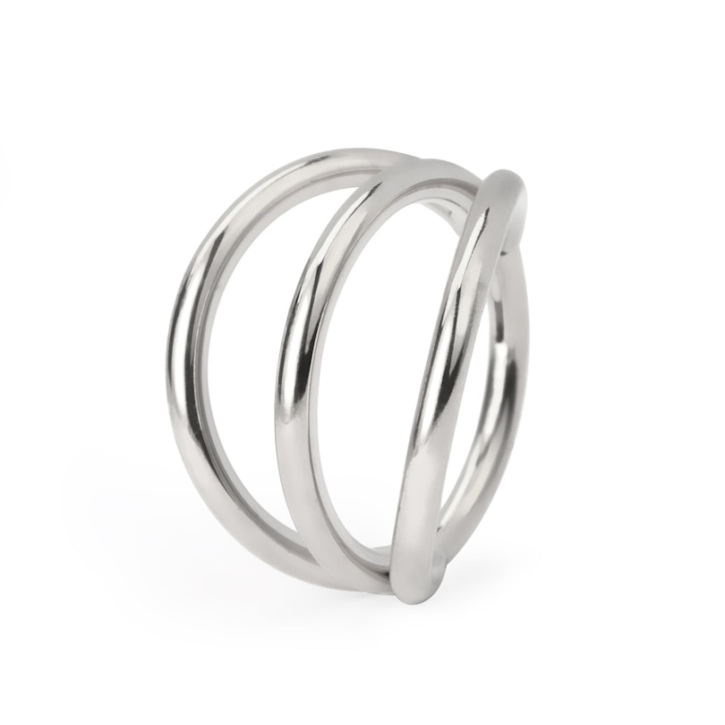 Tento jednoduchý ale efektivní kroužek má tři oddělené obruče, které se spojují v jeden kus, který prochází vašim piercingem.