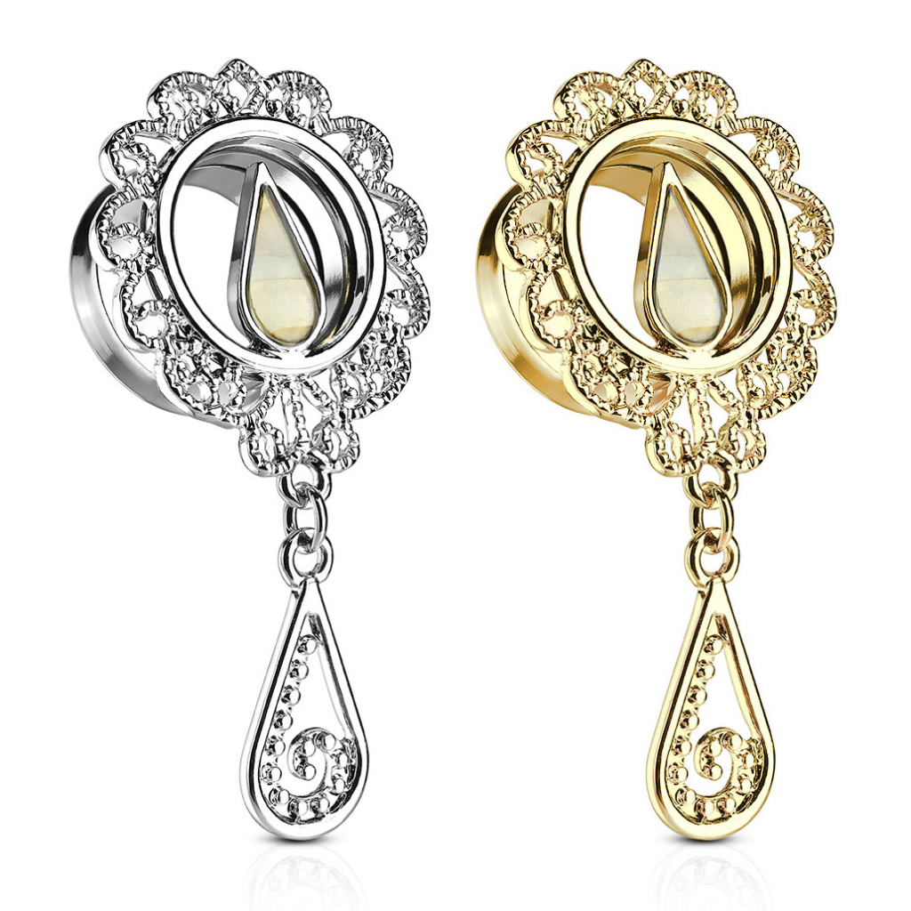 Krásný tunel, který můžete vidět na obrázku, je k dispozici ve dvou barevných provedeních - stříbrném a zlatém. Kromě barvy jsou však oba modely úplně identické. Oba jsou k dispozici v průměrech od 6 mm do 16 mm. Rozměry přívěšku na tunelu se liší podle velikosti tunelu.