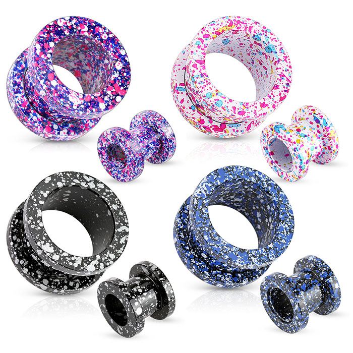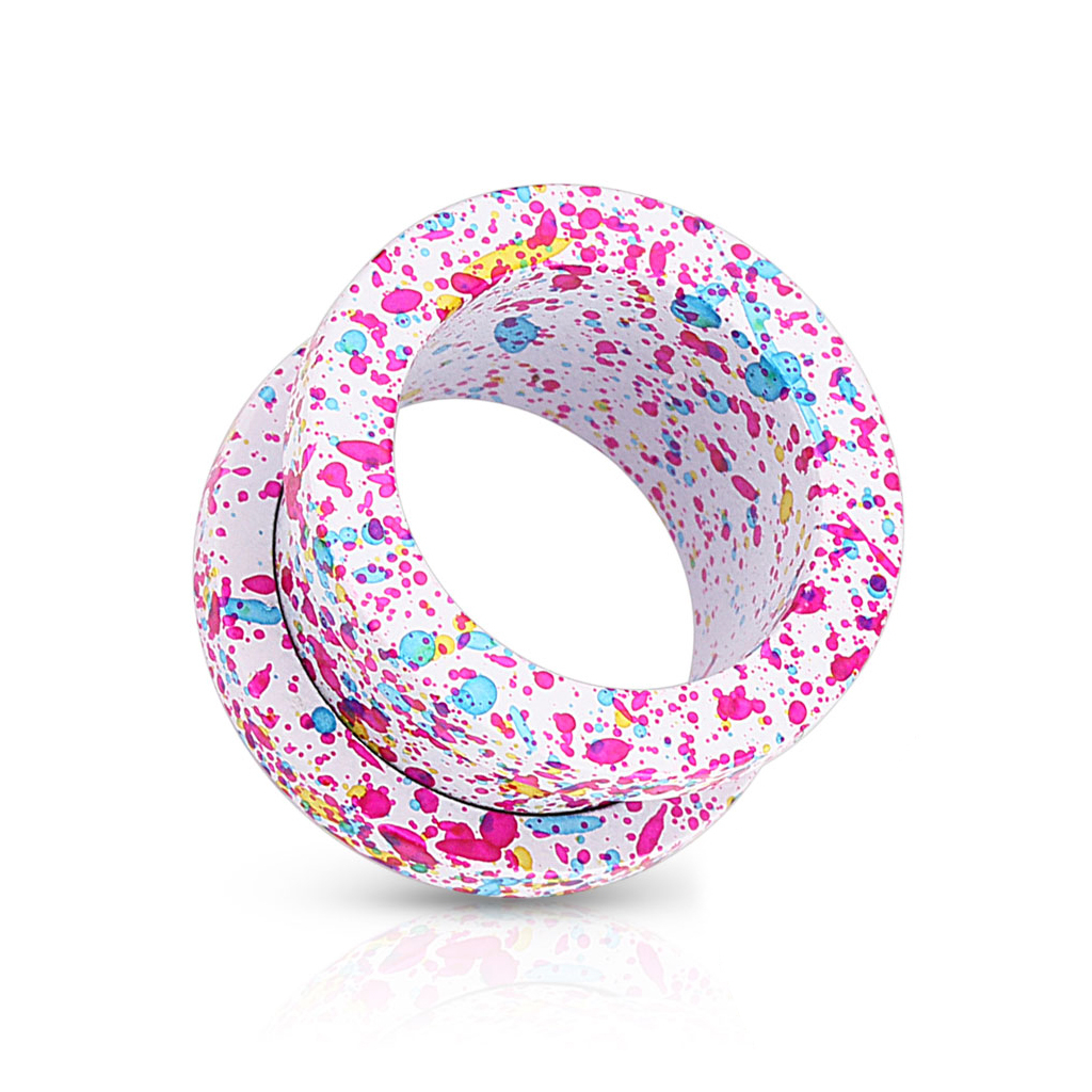 Pokud máte rádi živé barvy a máte roztažené ucho, je pro vás tento tunel perfektní. Je vyroben z chirurgické oceli a je dostupný v různých velikostech od 3 mm do 16 mm. Design tohoto tunelu je inspirován barevnými stříkanci od štětců, všechno v svěžích barevných kombinacích.