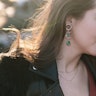 Měsíček je ozdobený filigránem – malé, různě poházené, drátky připomínající větvičky, které vytváří dekorativní vzor. Uvnitř srpku měsíčku je zavěšený první kamínek ve tvaru kapky. Druhý je zavěšený pod měsíčkem a je, jak můžete vidět na obrázku, větší než ten první.
