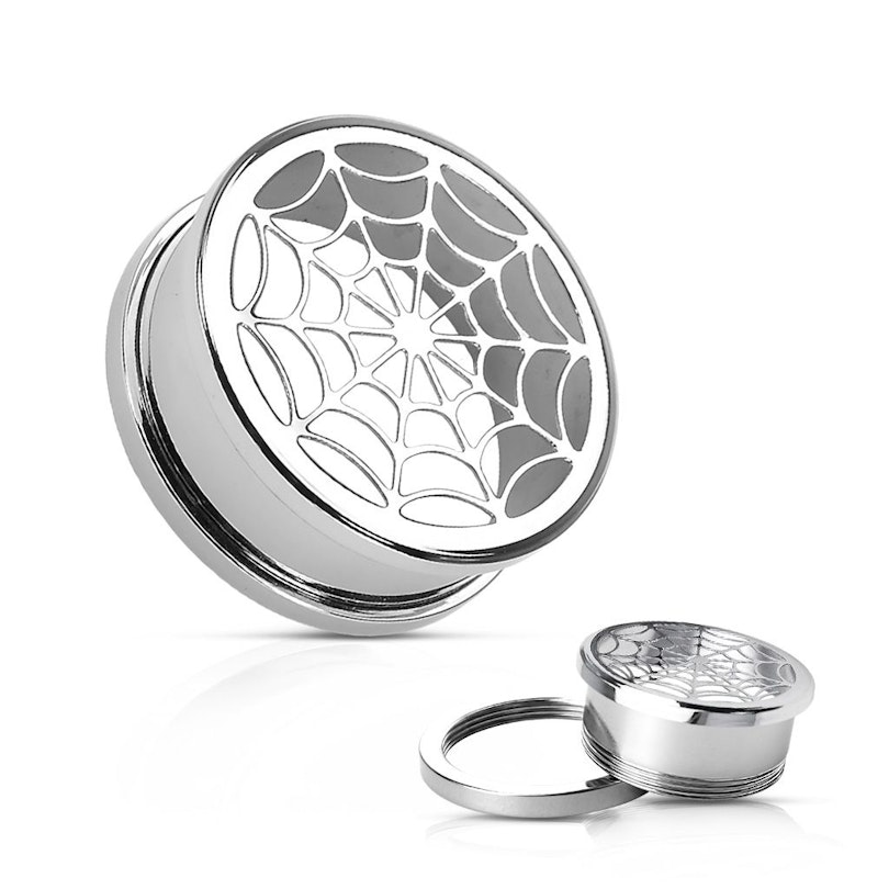 V přední straně je laserem vyřezaný tvar pavučiny.