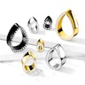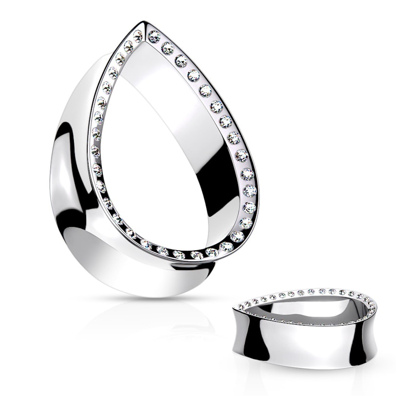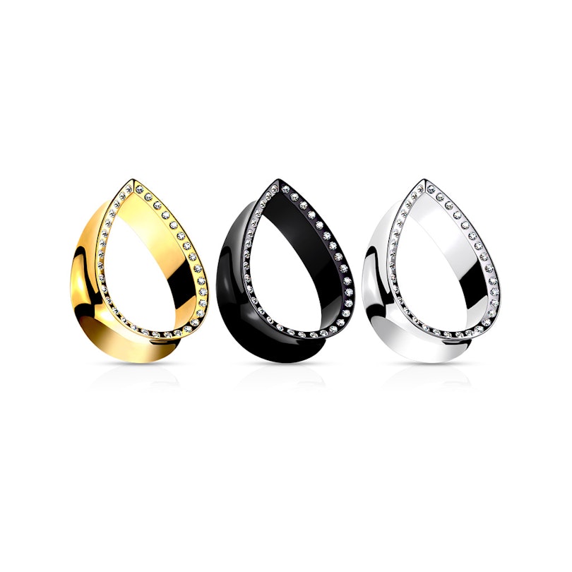 Většina tunelů jsou kulaté, avšak tento je speciální - má tvar kapky, nebo chcete-li, slzy. Je k dispozici ve třech krásných barvách, které si můžete prohlédnout na obrázku. Všechny barevné varianty tohoto šperku mají jedno společné - všechny po okraji zdobí drobné čiré kamínky. Množství kamínků na šperku se logicky odvíjí od velikosti šperku - čím větší si vyberete, tím více budete mít na šperku kamínků.