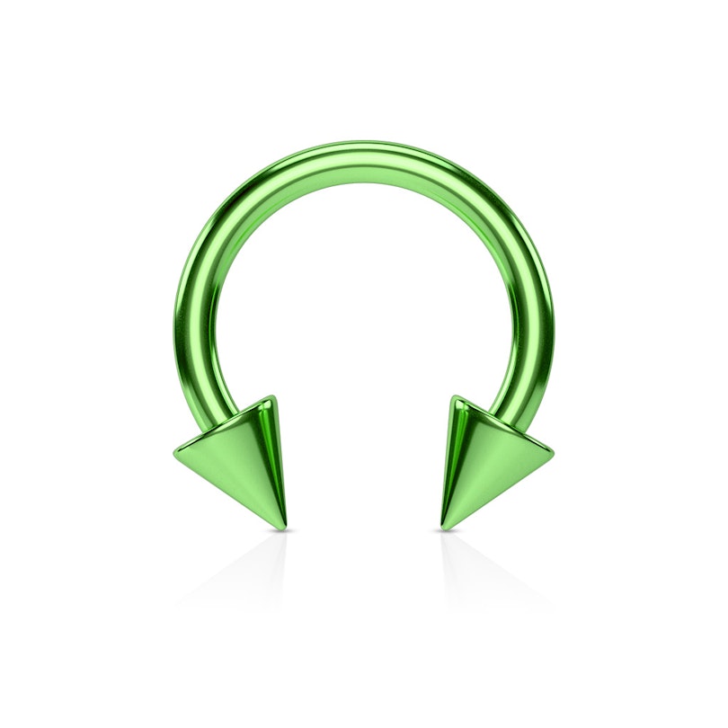 Tato skvělá podkova s hroty dodá Vašemu piercingu mnohem rockovější nádech, než jakýkoliv jiný šperk. Pořiďte si tedy tento odvážný model, který je k dispozici v několika barevných provedeních.