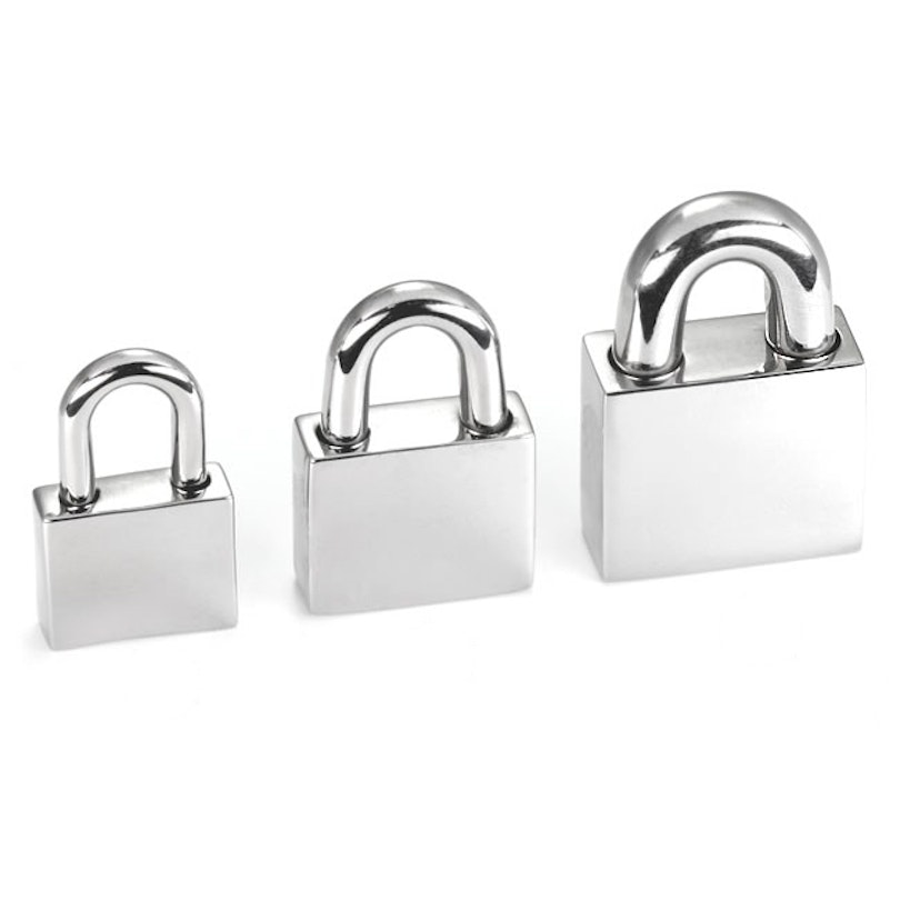 Pevný visací zámek z nerezové oceli (316l ASTM F-138) v pěti různých velikostech. Dostupný ve velikostech 3, 4, 5, 6 a 8 mm (8 g, 6 g, 4 g, 2 g, a 0 g), takže si můžete vybrat podle své velikosti a umístění piercingu. Protože jde použít v různých místech, je tento visací zámek velice univerzálním šperkem. Může být použit například v uších, bradavkách a nebo v intimních místech.