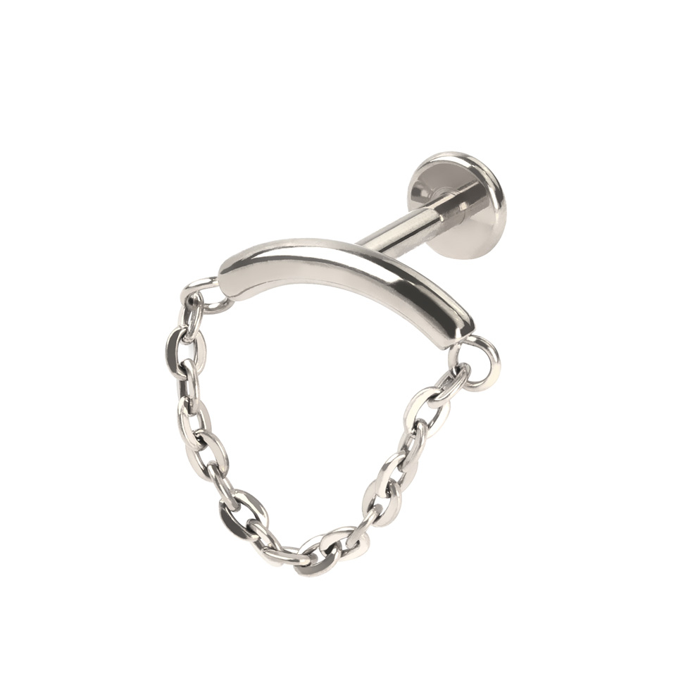 Tato labreta má zahnutou tyčinku, která nádherně zapadne do vašeho ucha, pokud se rozhodnete nosit ji ve svém helix piercingu. Bude vypadat skvěle i ve vašem ušním lalůčku. Je zdobená jemným řetízkem, který je připevněn na obou koncích a visí dolů.