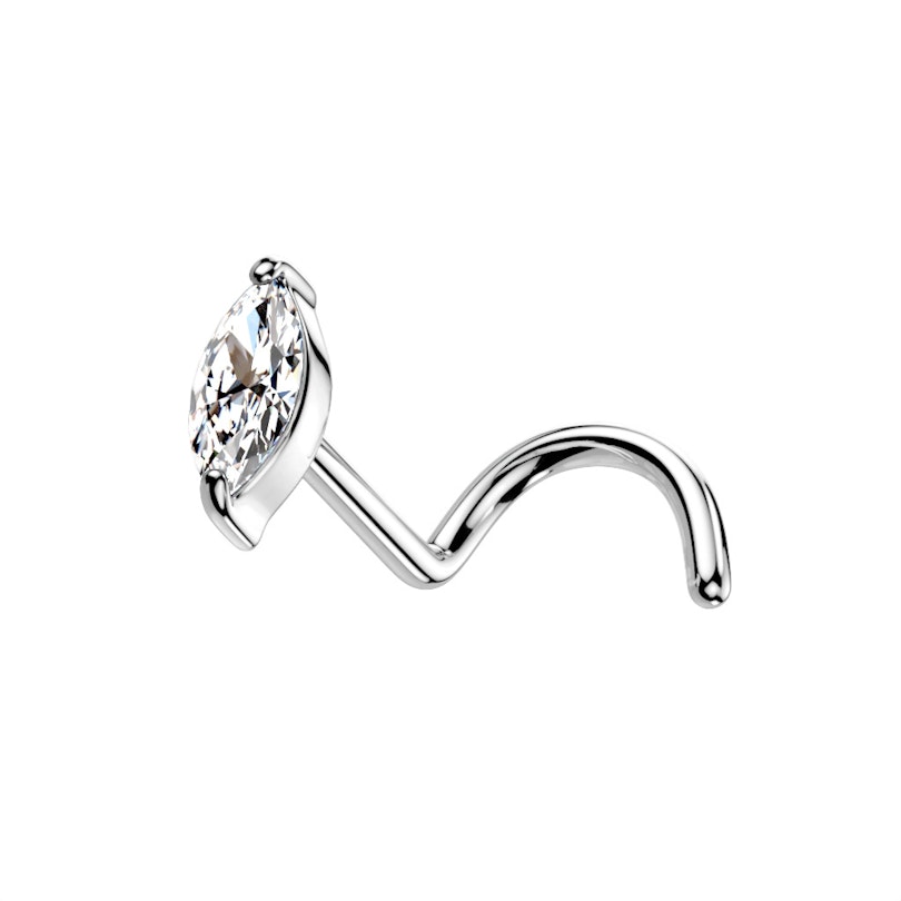 Zahnutý šperk do nosu z 14k zlata s kamínkem typu markýz