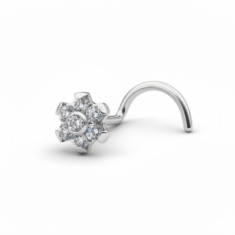 Titanový květinový šperk do nosu je maličký detail, který dodá tvému piercingu v nose jemný nádech. Drobný kamínek, který je vsazený do malých krapen sedí uprostřed jednoduché květinky, díky čemu je tento šperk vhodný na každodenní nošení.