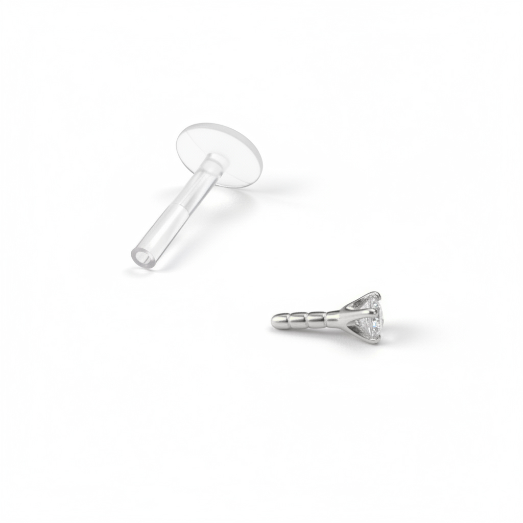 Zlatá 14kt labreta s PTFE tyčinkou a kamínkem