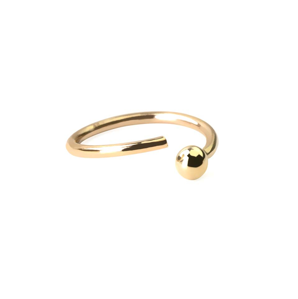 Představujeme vám fantastický kroužek ze 14karátového zlata, který je praktický a stylový. Jednoduchý design kombinuje kroužek a kuličku s mimořádně praktickým uzavíracím mechanismem. Kulička je na jednom konci přivařená, aby nemohla vypadnout nebo se ztratit. Stručně řečeno, jedná se o jediný kus bez volných částí.