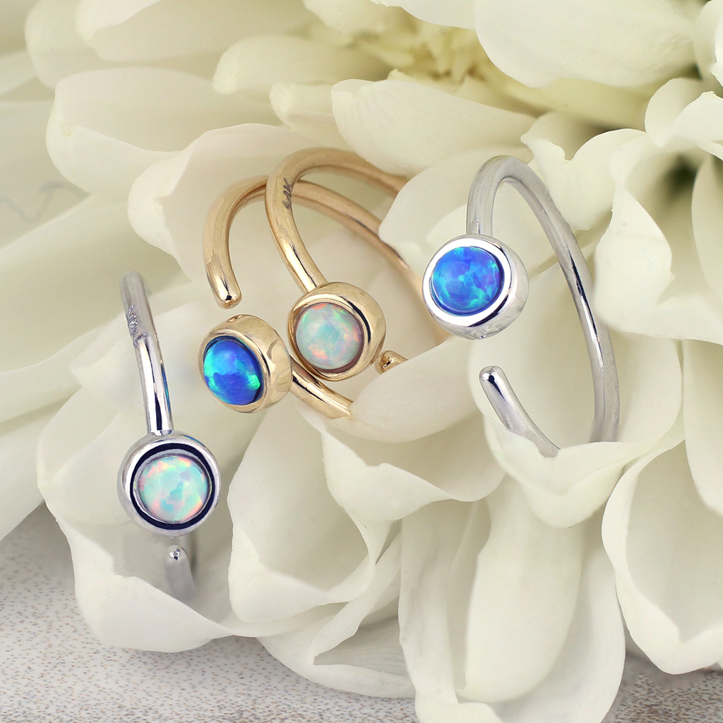 Kromě výběru barvy zlata si také můžete zvolit barvu opálových kamínků a to mezi bílou nebo modrou. Bílé opály mají načervenalý, žlutý a zelený nádech, ale bílá barva převládá. Modré kamínky hrají mnoha odstíny modré od světlé, tyrkysové až po tmavomodrou.