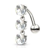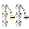 Zlatý 14kt obrácený piercing do pupíku se třemi zirkony