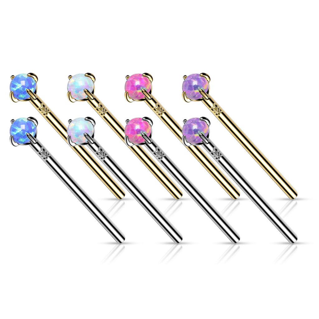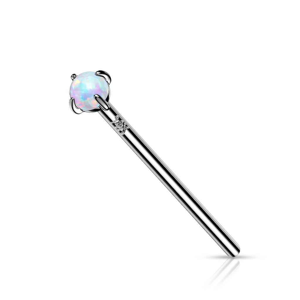 Tyčinka je na jednom konci ozdobená krásným opálovým kamínkem. Samozřejmě se nejedná o pravý opál, ale pouze o opál syntetický - pravé opály jsou velice křehké, a nejsou tedy vhodné pro výrobu šperků. Kamínek je na tyčince přidržován pomocí čtyř drobných krapen, které zaručují, že Vám kamínek nevypadne. Kamínek je Vám k dispozici na výběr v několika barvách, tak se prosím neváhejte podívat na obrázek produktu, abyste věděli, jaké barvy jsou Vám k dispozici.