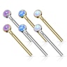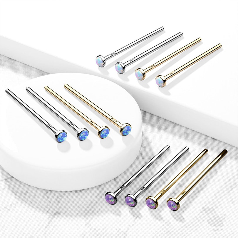 Tyčinka piercingu je 19mm dlouhá, a je k dispozici ve dvou různých tloušťkách. Kromě toho, že si můžete vybrat tloušťku tyčinky si můžete vybrat i barvu kamínku. Tyčinka je totiž na konci ozdobená syntetickým opálem. Pravé opály jsou moc křehké, a nejsou tedy pro výrobu šperků vhodné, proto je tento šperk ozdoben jejich syntetickou verzí.