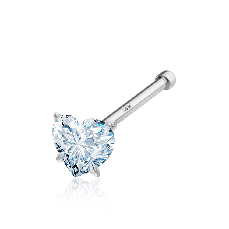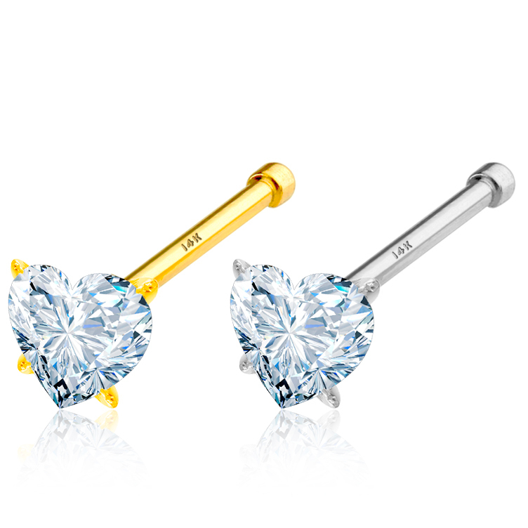 Zlatý 14kt piercing do nosu s kamínkem ve tvaru srdce